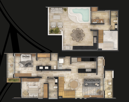 ● Amenidades: Family room, salón lounge, gym, alberca, terraza lounge, play room, área