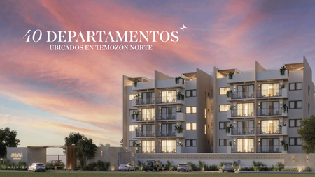 Un conjunto de 40 amplios departamentos exclusivos, distribuidos en dos torres 5 niveles, ubicados Temozón, al norte de la ciudad de Mérida, zona con crecimiento potencial y