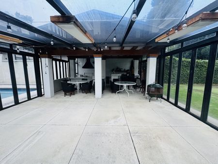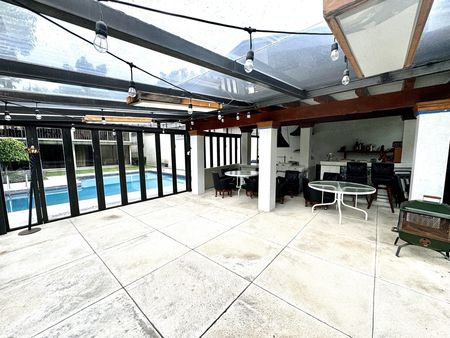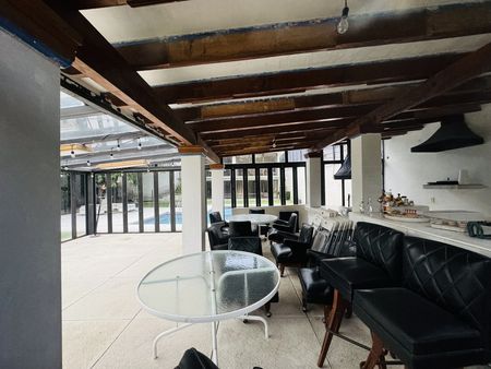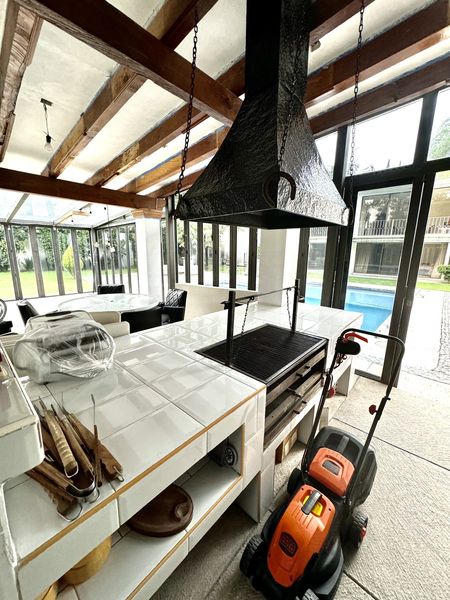 Señora residencia desarrollado en tres plantas estancia muy grande de tres ambientes. Se abre a terrazas para disfrutar de sus inmensos jardines planos en sus terrazas techadas. Cocina súper moderna, con isla con barra con despensa, la cena amplias encimeras y ante-comedor contiguo.