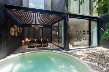 Ubicadas en el exclusivo residencial Aldea Zama, estas nuevas casas ofrecen un refugio sereno rodeado de exuberante selva tropical. A tan solo minutos del centro bohemio de Tulum y de la nueva carretera hacia la playa, los residentes disfrutarán de fácil acceso a la vibrante zona hotelera y a las playas de arena blanca. Los amantes de la naturaleza amarán la proximidad a las antiguas ruinas de Tulum y Cobá, así como a los impresionantes cenotes dispersos por la selva maya.