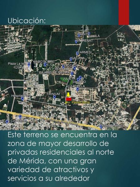 Ubicado sobre la avenida paseo norte, donde encontraras desarrollos de privadas residenciales, farmacias, tiendas 24hrs, con gran variedad de atractivos y servicios al rededor de este predio.