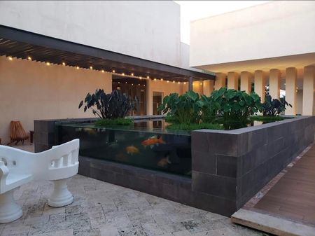 Piscina semi-olímpica, recreativa para adultos y niños, y espejos de agua.