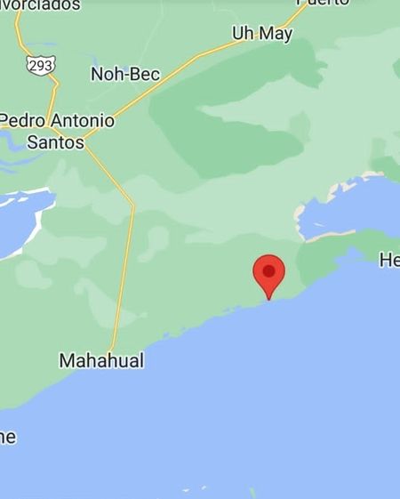 Cerca del puerto de Mahahual y a 95 km de Chetumal