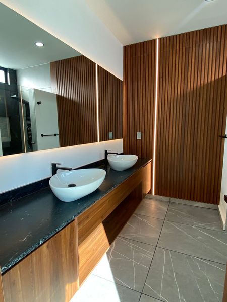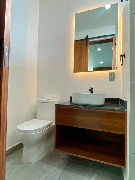 Espejos de los baños flotados con luz indirecta. Toda la iluminación de la casa en tecnología LED