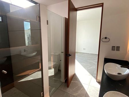 Amplia recámara o estar de TV con baño completo , ventanal con vista a fachada, terraza con piso antiderrapante, barra de servicio con cubierta de granito y tarja.