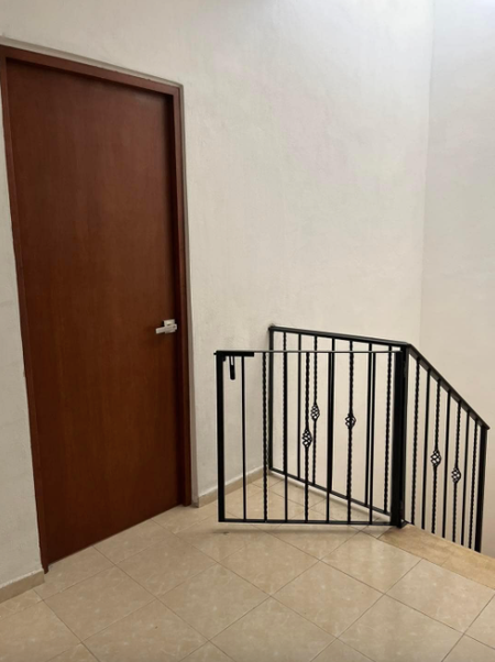-Escalera con descanso y reja de seguridad para niños.