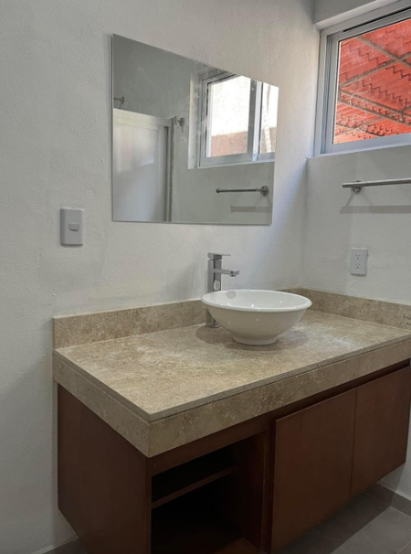 -Amplia recámara principal con closet vestidor , escritorio ,abanico de techo y baño completo con cancelaría de cristal y espejo con encendido digital led.