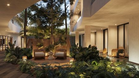 Estos hermosos departamentos y penthouses de 2 habitaciones y 2 baños ofrecen diferentes diseños y distribuciones para satisfacer sus necesidades, incluidas opciones lock off para ocupación adicional y potencializas sus ingresos. Ofrecen una ampla distribución abierta con cocina y terraza privada con vistas a la selva. Los penthouses cuentan con rooftop privado con alberca, perfectas para tomar el sol o cenar al aire libre bajo las estrellas. El edificio es seguro y protegido con entrada cerrada y seguridad las 24 horas. Ofrece una piscina y un deck con camastros para tomar el sol, así como acceso por elevador y estacionamiento.