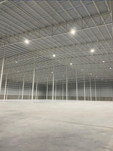 - Altura punto más alto: 16 m. - Altura punto más bajo: 12 m. -Techo: Lámina KR18, con 10% de traslucido. - Luminaria: led UFO tipo JLRE-UFO150 Potencia 150 w, corriente eléctrica mA y flujo luminoso 21000lm. - Subestación trifásica: 400 kva’s. - Andenes para carga y descarga: 4 con rampa niveladora marca Merik con capacidad de 30,000 libras. - Rampas de acceso: 2. - Cisterna: 60,000 Lts. - Piso de almacén: Concreto hidráulico MR 42 de 15 cm de espesor . - Patio de maniobra: Concreto hidráulico MR 42 de 7 cm de espesor . - Puntos de conexión de servicios públicos ( agua potable, drenaje y medios) . - Fibra óptica. - Circuito cerrado. - Agua. - Red de drenaje. - Línea TELMEX.
