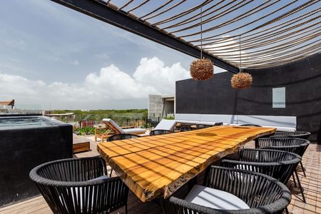 Nuevo departamento de dos recamaras, equipado en su totalidad, con piscina privada, excelentemente ubicado en el centro de Tulum, dentro de un exclusivo conjunto departamental, con todas las amenidades necesarias, tales como piscina, un cenote artificial, jacuzzis, baƱos de vapor, gimnasio y una espectacular vibra de tranquilidad y misticismo que solo Tulum puede ofrecer.