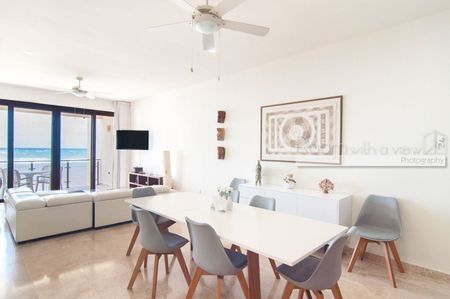 Este amplio y luminoso departamento de 3 habitaciones y 3 baños ofrece vistas espectaculares a la Bahía de la Media Luna, al Caribe y más allá. Ofrece una amplia distribución abierta con grandes ventanales que permiten la entrada de mucha luz natural. Cuenta con cocina completamente equipada y barra para desayunos, sala de estar llena de luz solar, comedor y una amplia terraza techada con vistas al mar. Este es un lugar encantador para disfrutar de tu café de la mañana y desayuno o una copa de vino por la noche. Las habitaciones tienen balcones privados, closets y baños propios. Este departamento cuenta con pisos de cerámica y acabados de alta calidad que son duraderos y fáciles de mantener. Se entrega completamente amueblado y equipado, con un programa de alquiler rentable ya en marcha.