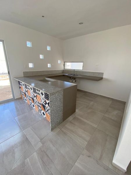 -Cocina con barra de cerámica con acabados de granito