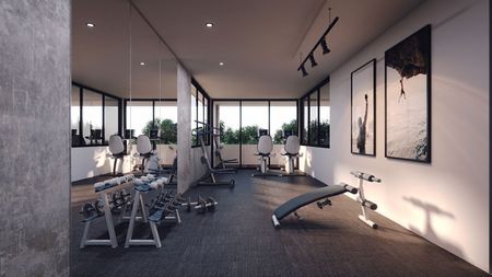 Este nuevo y hermoso desarrollo ofrece excelentes amenidades, que incluyen dos albercas, gimnasio, estudio para yoga, área comercial y espacio de trabajo conjunto. El edificio es seguro y cuenta con entrada controlada y seguridad las 24 horas. Tiene un lobby tipo hotel, elevador, lavandería y acceso a Internet.