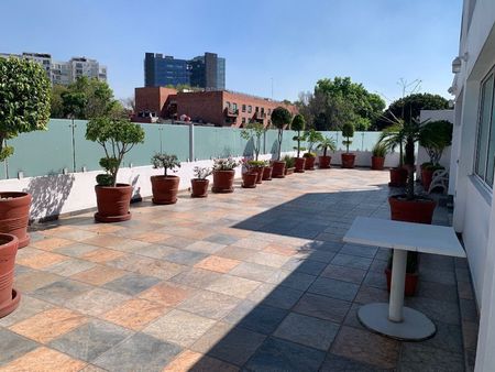 EXCELENTE OFICINA (SE PUEDEN RENTAR AMUEBLADA O TAMBIEN SIN MUEBLES), BIEN UBICADA CON BUENAS VIAS DE COMUNICACION (EJE 6 SUR, EJE 5 SUR, DIV. DEL NORTE, AV. CUAUHTEMOC), METRO , METROBUS, SE ENCUENTRA EN EL PENT HOUSE EN EDIFICIO DE 3 PISOS CON ELEVADOR, 3 PRIVADOS (DOS CON BAÑO PROPIO), 4 BAÑOS, SALA DE JUNTAS, RECEPCIONISTA, CUARTO DE ARCHIVO, CAFETERIA. SALA PARA VISITAS, TERRAZA Y ROOF GARDEN PRIVADO