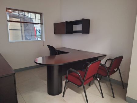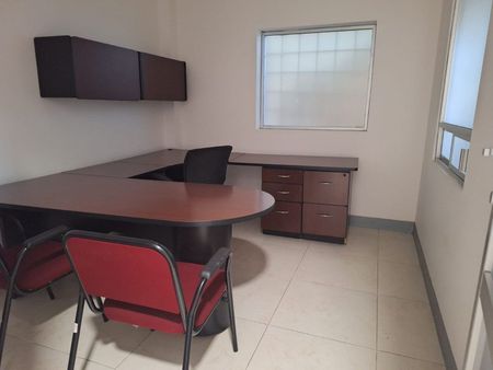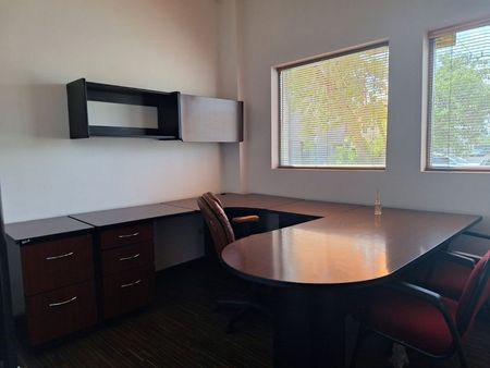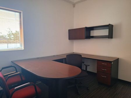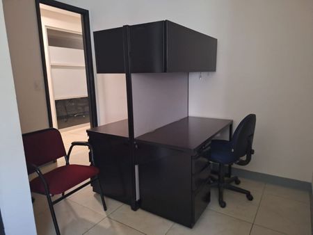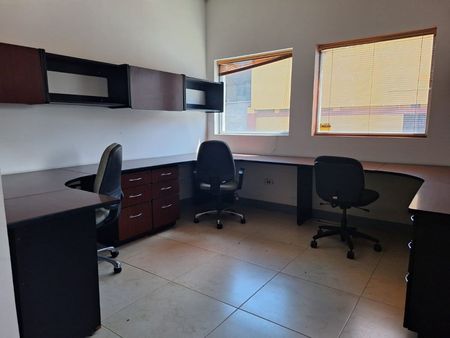 Renta de oficina completamente amueblada, cuenta con 5 privados uno de ellos cuenta con baño propio y cada uno cuenta con su escritorio completo, además cuenta con 2 áreas comunes con estaciones de trabajo para 7 personas, recepción, sala de juntas y medio baño. estacionamiento al frente para 6 autos y por un costado cuenta con espacio suficiente para estacionamiento.