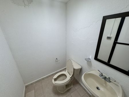 La oficina cuenta con baños y un amplio espacio ideal para uso corporativo.
