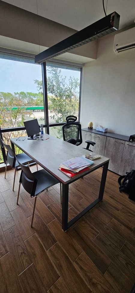 - Oficina 2: Escritorio,silla,credenza,2 sillas para visitas y aire acondicionado