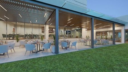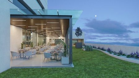 El corporativo ofrece amenidades exclusivas, como locales comerciales en planta baja, restaurantes, cafetería, sucursal bancaria, 44 oficinas, 16 consultorios y 16 suites de hospedaje.