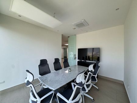 • Se entrega completamente amueblada y equipada: escritorios, climas, cocineta, plafones, canceles, puertas, iluminación, aire acondicionado, internet, telefonía, agua y luz.