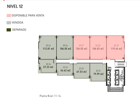 Espacios disponibles desde 54.60 hasta 119.46 m2