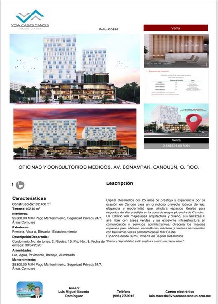OFICINAS Y CONSULTORIOS MEDICOS, AV. BONAMPAK, CANCÚN, Q. ROO.