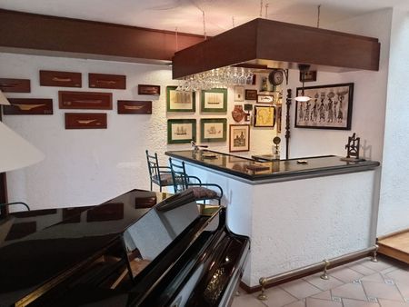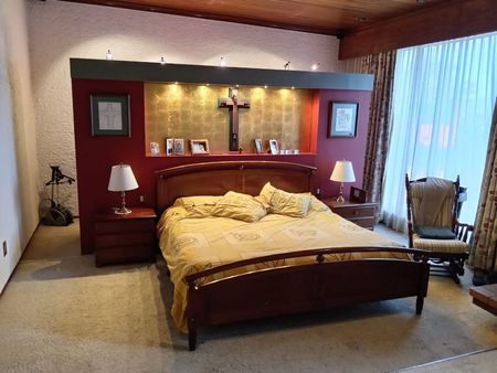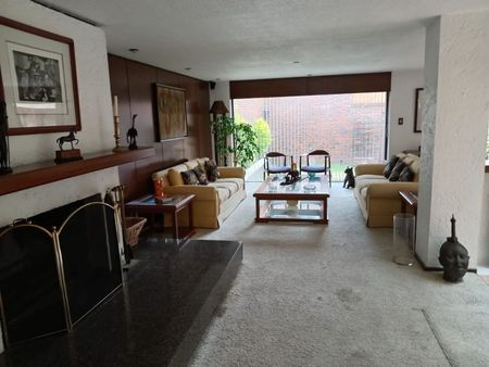 3 recámaras con baño y vestidor (posibilidad a cuarta recámara) -gran comedor - amplia sala con salida al jardín - sala con chimenea • sala de tv • estudio • amplio despacho con roof garden y terraza. • jardín con asador y fuente - 4 chimeneas en función •