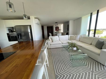 Este penthouse de 3 recámaras, disponible sin amueblar, cuenta con techos altos, vestidores y un amplio rooftop privado con bar, perfecto para relajarse o recibir a sus huéspedes. Ubicado en el corazón de Ciudad Mayakoba, el primer residencial sustentable de la Riviera Maya, combina exclusividad y privacidad con acceso conveniente a las espectaculares playas.