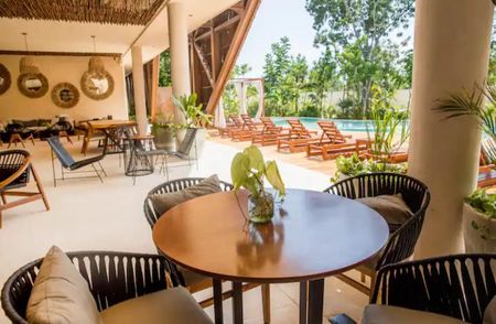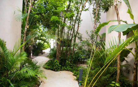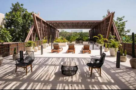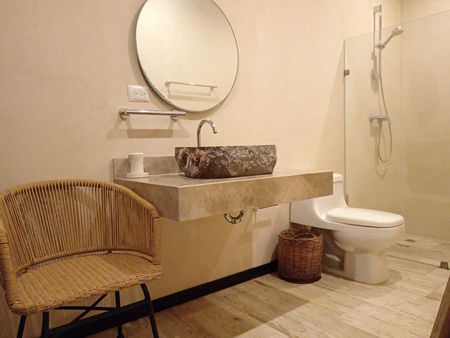 Acabados modernos: pisos de concreto pulido, muros con chukum, cocina integral, canceles de cristal templado, aire acondicionado y calentador eléctrico