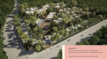 El proyecto consta de 63 departamentos en el edificio norte (21 por nivel) y 102 estudios en la parte sur configurados en 3 niveles.