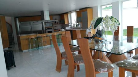 • Entrada principal: doble puerta de cristal, hall con doble altura y domo de cristal que llena de luz natural • Sala de TV: estilo cine en casa, con persianas Hunter Douglas y luz indirecta • Estudio: perfecto para oficina o biblioteca, con libreros y escritorio incluidos • Salón de usos múltiples: capacidad para 70 personas, con salida a terraza y jardín • Sala y comedor: espacios conectados, doble altura, domo de cristal y chimenea • Cocina profesional: equipada con estufa eléctrica, parrilla de gas y carbón, horno y calentador industrial, muebles Poggenpohl y Quetzal • Cuarto de lavado y planchado • Cuarto de servicio con baño completo • Terraza de servicio con salida al jardín