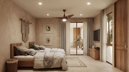 • Ventanas y puertas corredizas de aluminio de 3” color madera y vidrio de 6 mm.