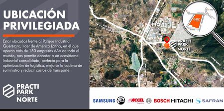 acceso inmediato a vías de comunicación a las ciudades más importantes del país, así como al aeropuerto intercontinental de Querétaro, ideal para expandir sus operaciones y mantener una ventaja competitiva.