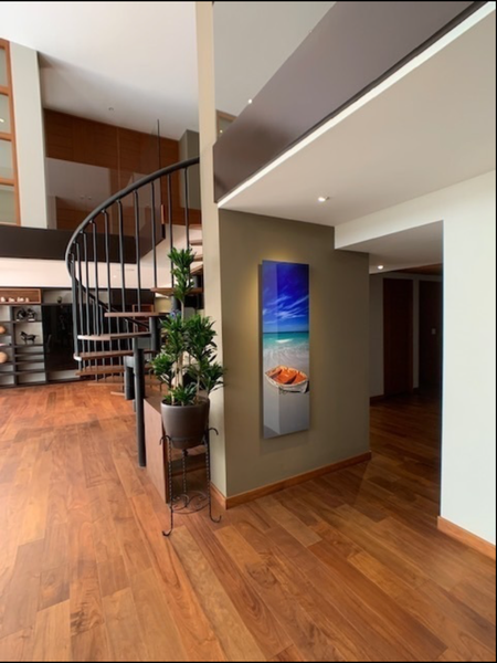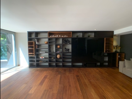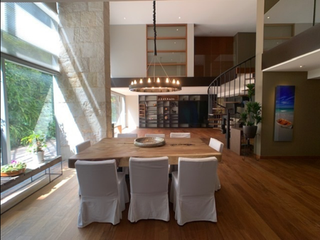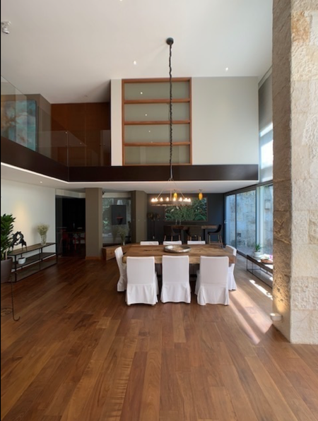 Metraje total de 400m2 edificado en 2 pisos con espacio de doble altura como protagonista del departamento.
