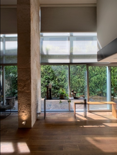 El patio interior está comunicado con la sala comedor a través de un ventanal, invitando a integrar el area social con el espacio exterior del departamento.