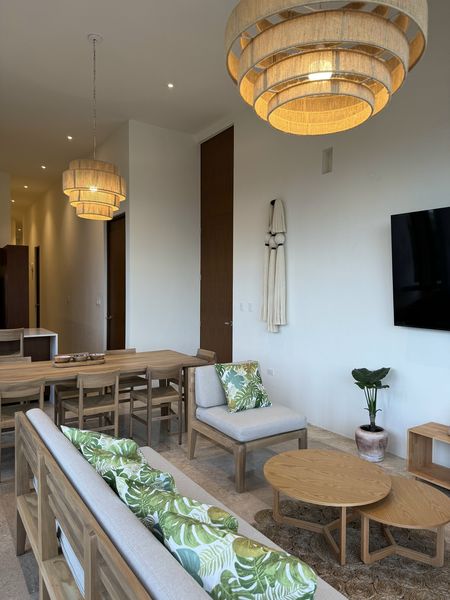 1 planta, 3 recamaras, 145 baños, Terraza con swim up, Comedor, cocina, Sala, 1 cuarto de servicio, Shoot de basura,