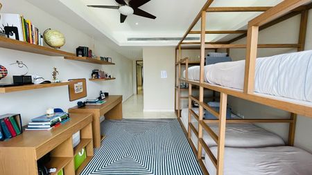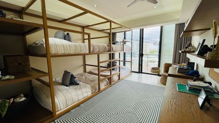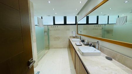 Distribución amplia y regular. Cuenta con 4 amplias recámaras con terraza y walking closet en todas las habitaciones. Sala de TV., cocina con ante comedor, terraza frontal con vista al mar y una terraza trasera con vista hacia Puerto Cancún.