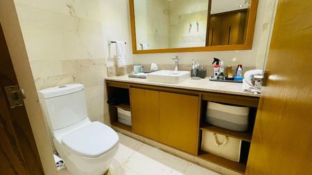 El exterior del complejo cuenta con amplias albercas con espacios para tomar el sol, catamarán, canchas deportivas, área comercial de lujo y restaurantes, campo de golf, estacionamiento techado, pista de jogging, entre otros.