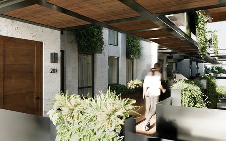 Es un proyecto de 28 departamentos distribuidos en 3 pisos, todos con espacios abiertos, amplia entrada de luz natural, terminados de alta gama y vistas a las copas de los árboles.