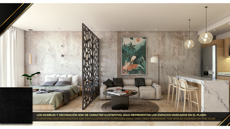 Gimnasio, restaurante, spa, terraza, servicio de concierge, fogata, lobby con recepción, domótica, estacionamiento subterráneo, bar y parrilla, patio central, sala de juntas, coworking y área lounge.