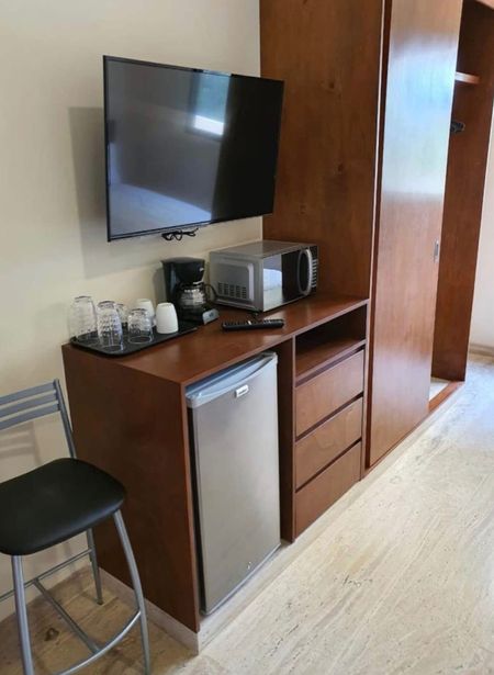 Cuenta con 3 habitaciones de gran tamaño, todas disponen de A/C, dos de ellas con TV, dos camas matrimoniales c/u, la habitación principal con una cama king size. Sala de estar con TV. 3 baños completos, uno en cada habitación, el de la recamara principal se comparte como baño de visitas y en el segundo piso en la terraza el jacuzzi cuenta con un medio baño. Cocina totalmente equipada en planta baja y cocineta en tercer piso.