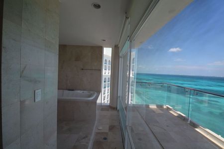 Excelente penthouse, ubicado en la Zona Hotelera de Cancún, con hermosa vista al Mar Caribe y a la laguna Nichupté, consta de 3 recamaras, cada una de ellas con baño completo y vestidor y la principal con tina de hidromasaje, sala, amplio comedor, cocina integral, cuarto de servicio, cuarto de lavado y terraza, todo ello construido en una superficie de 422 m2, además cuenta con A/A central, gas estacionario, dos cajones de estacionamiento, frente de playa, servicio de agua potable, Energía de 110v y 220v, drenaje, T.V./satélite e internet.