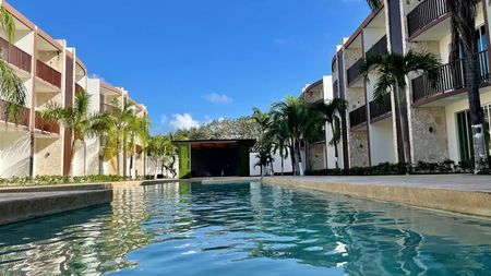 Además, cuenta con todas las comodidades que necesitas: cocina integral con barra de granito, amplia sala-comedor con vista a la alberca y a la palapa, recámara principal con baño completo y balcón, recámara junior con baño completo y para visitas, y acceso privado al lobby. El condominio cuenta con seguridad interna las 24 horas y un amplio estacionamiento para tu comodidad.