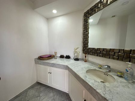 Primer piso consta de la siguiente distribución: recámara 3 con vestidor y baño completo con jacuzzi. La recámara principal con vestidor, baño y sala de tv. Cuenta con un área de oficina que conecta a otra terraza.