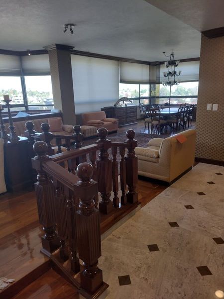 El comedor y la sala, con vistas panorámicas a la ciudad, otorgan un escenario perfecto para eventos culinarios; el bar integrado eleva las experiencias gastronómicas. La cocina integral te permitirá crear para los más exigentes paladares; el antecomedor te proporciona un espacio adicional.