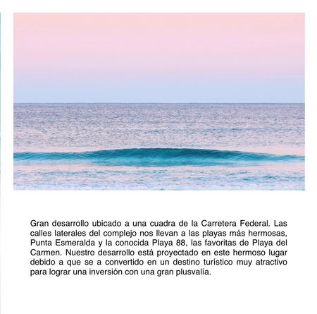 Gran desarrollo inmobiliario ubicado en el corazón de la Riviera Maya, a 5 minutos de la playa, cercano a reconocidas tiendas, restaurantes y bares, a 10 minutos de los parques Xcaret, Xplore y Senses, a una cuadra de la carretera federal, a 35 minutos de Tulum y a 40 minutos de Cancún, mejor ubicación no es posible.