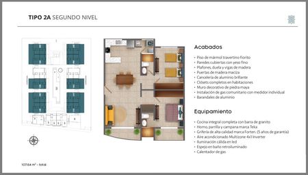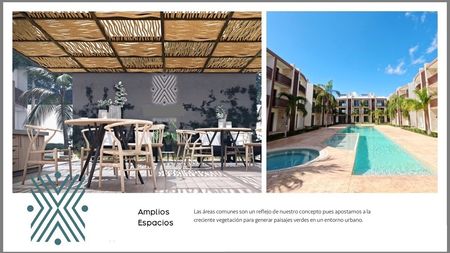 Contamos con 42 departamentos de 2 Recámaras y 2 Baños, para entrega inmediata, con un diseño Boho Mediterráneo, el cual combina maderas, paredes claras, piedra Maya y losas catalanas, equipados con :