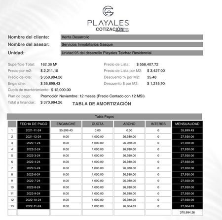 Precio Promocion noviembre : Precio de contado a 12 meses.