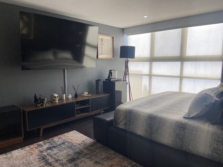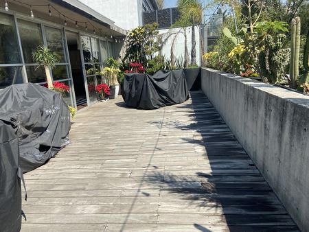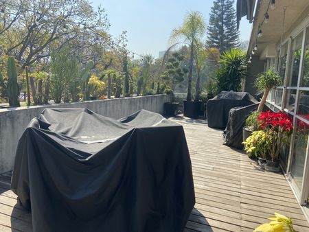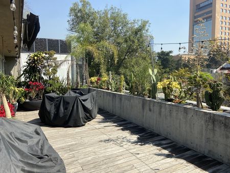 Polanco, en calle tranquila estupendo departamento en dos niveles. Edificio de pocos departamentos. Acceso a cada nivel por elevador o interno por escalera. En nivel alto, sala-comedor con acceso a una increíble y amplia terraza con vista a calle arbolada. Cocina equipada con cubierta de mármol, área de lavado, cuarto de servicio y recámara con closet, baño completo y terraza privada. Baño de visitas en pasillo. En el otro nivel tres habitaciones, dos con vista a la calle y las tres con vestidor y baño y muy iluminadas. Dos lugares de estacionamiento. Planta de luz. Cisterna. Seguridad 24/7