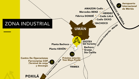 Ascende Parque Industrial Umán-Poxilá es un complejo de lotes para uso logístico, comercial e industrial, ubicado en una zona de explosivo crecimiento industrial.