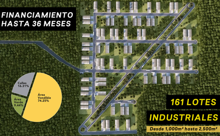 161 Lotes industriales, desde 1,000 m2 hasta 2,500 m2